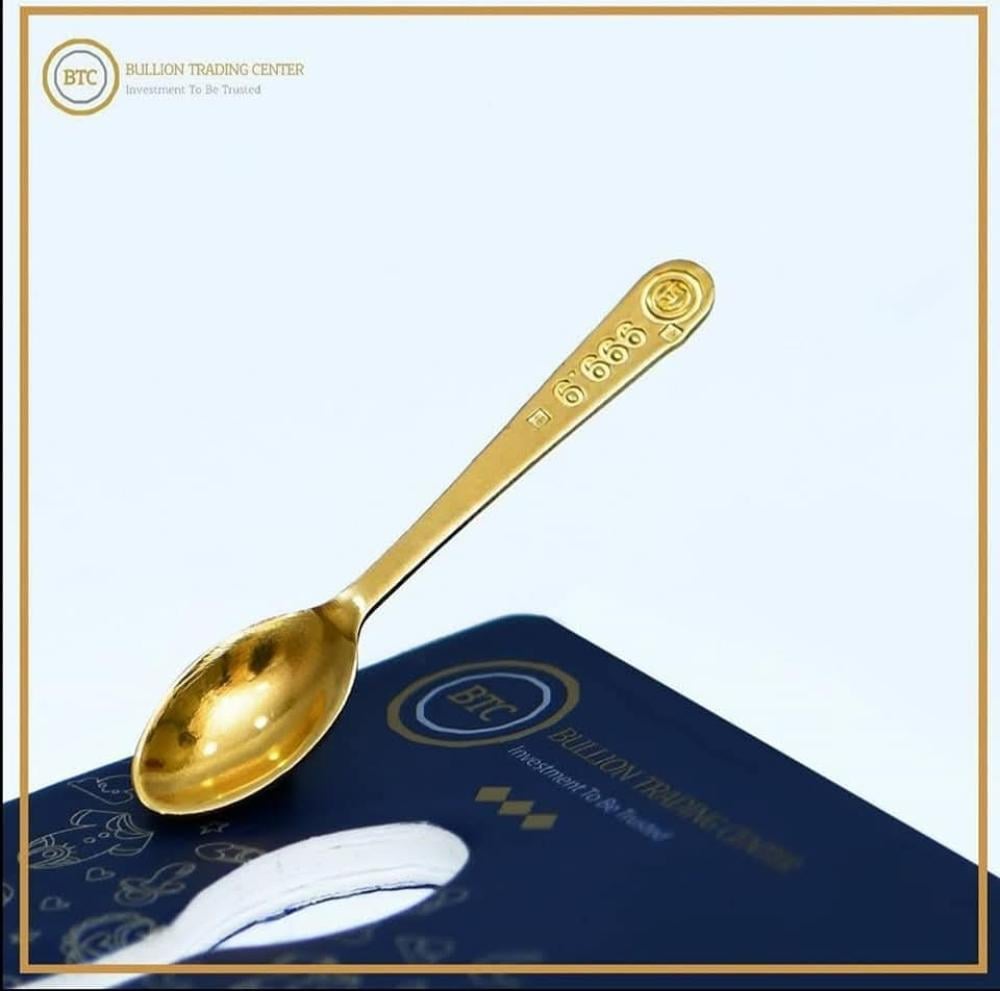 سبيكة على شكل ملعقة من ذهب خالص النقاء 999.9 عيار 24 من شركة بي تي سي بوزن 10 جرام